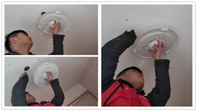 老的灯灯罩一圈因为部分掉漆,已经有了锈斑,而且因为是U型灯管,已经换过多次灯管了。另外,清晰可见灯罩面上蚊蝇的尸体,每次拆灯罩时都得小心翼翼,不然弄一头的蚊尸。安装预定了安装工人,因为房间顶部是水泥,想着安装要打孔,不过师傅到省力,直接用一枚螺丝固定到顶部的线盒上,打孔完全省了,早知道自己动手了。