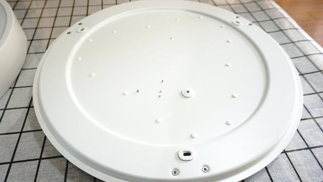 Yeelight皓石智能LED吸顶灯直径40CM,高度是8CM,背板采用材质是Spcc,其实就是冷轧板,灯罩采用是PMMA,边框是铝合金的。整体的做工还是可以的,而且各种细节上做的也很到位,表面的颜色均匀,手感也很好,简约但并不失气质。